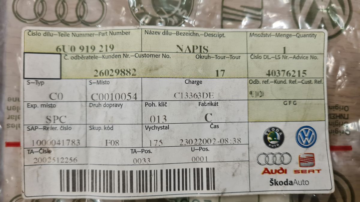 - Objednací kód: 6U0919219