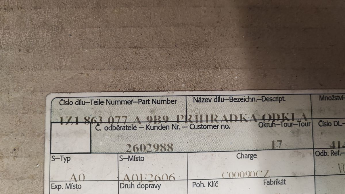 - Objednací kód: 1Z1863077A 9B9