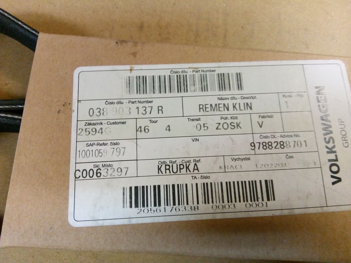 - Objednací kód: 038903137R