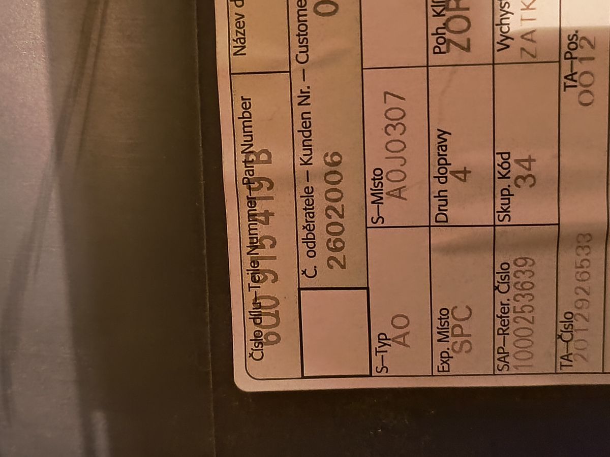 - Objednací kód: 6Q0915419B