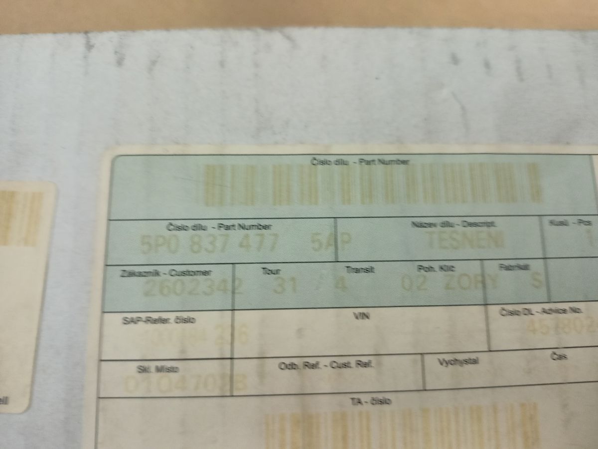 - Objednací kód: 5P0837477 5AP